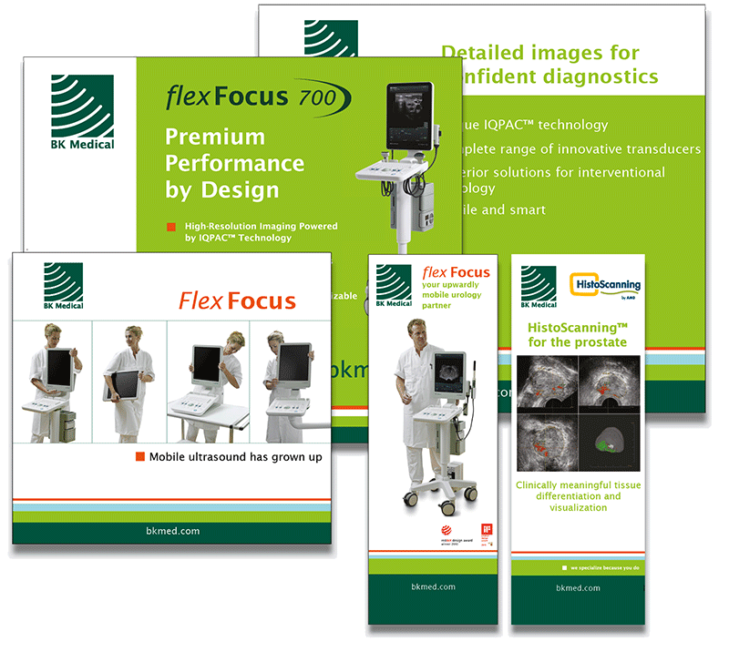 Jeg har designet omfattende materiale til messer og udstillinger for BK Medical (nu BK Ultrasound). Udstillingspaneler, bannere, posters, merchandise, videoer mm.